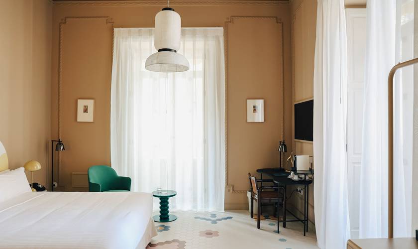 The superior room, located on the top floor of the building, is the best place to contemplate the views of the city. From the moment you walk in, you feel welcomed into the large bed in a space measuring 22m². This room, with outward facing windows, was decorated by Jaime Hayón. It has air conditioning and even has a private bathroom with a shower and free WiFi, as well as a flat screen TV.